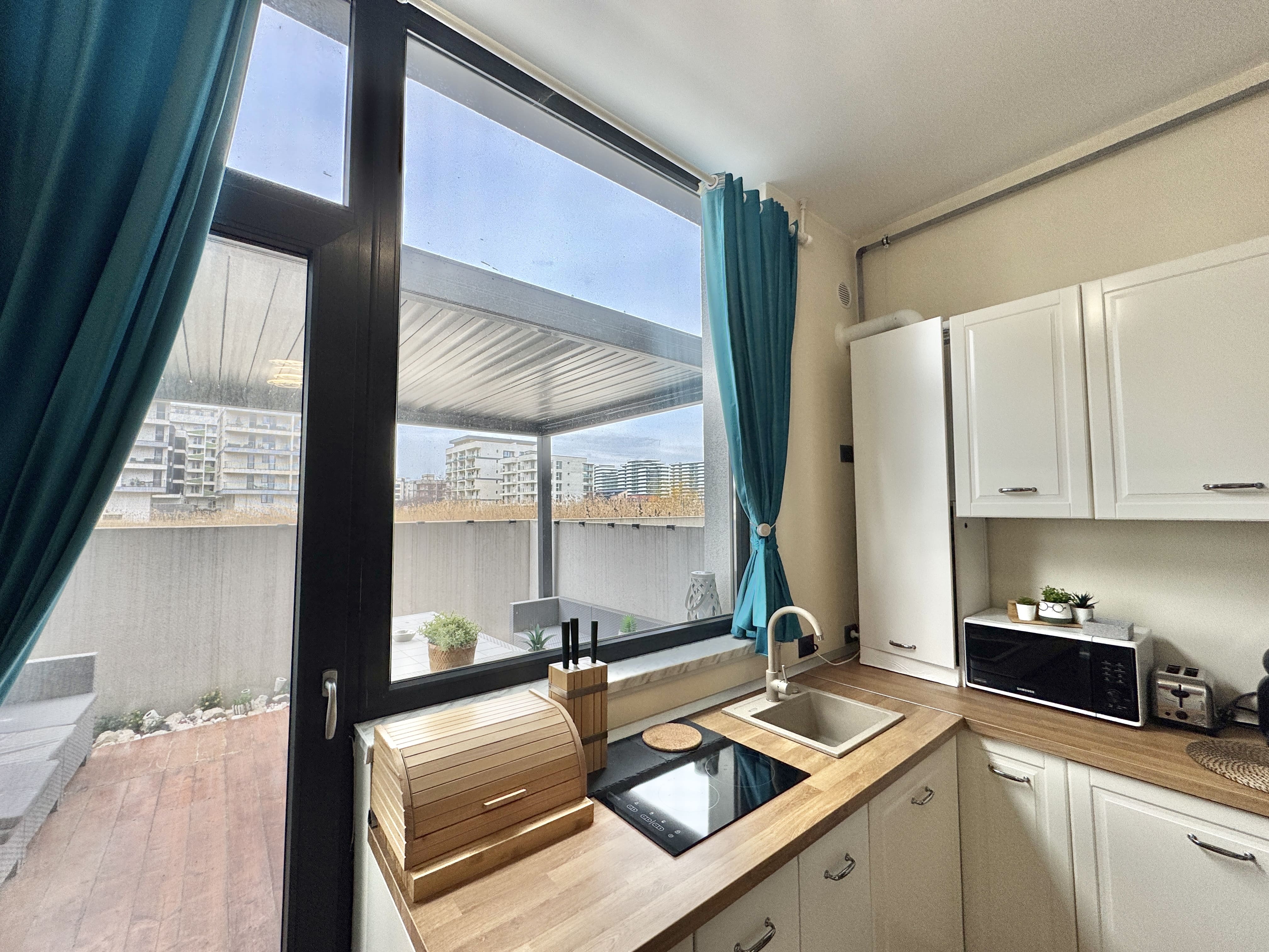 ✔️ Bucătărie complet utilată, cu electrocasnice moderne: frigider, plită, cuptor cu microunde, espressor sau filtru de cafea și veselă completă ☕